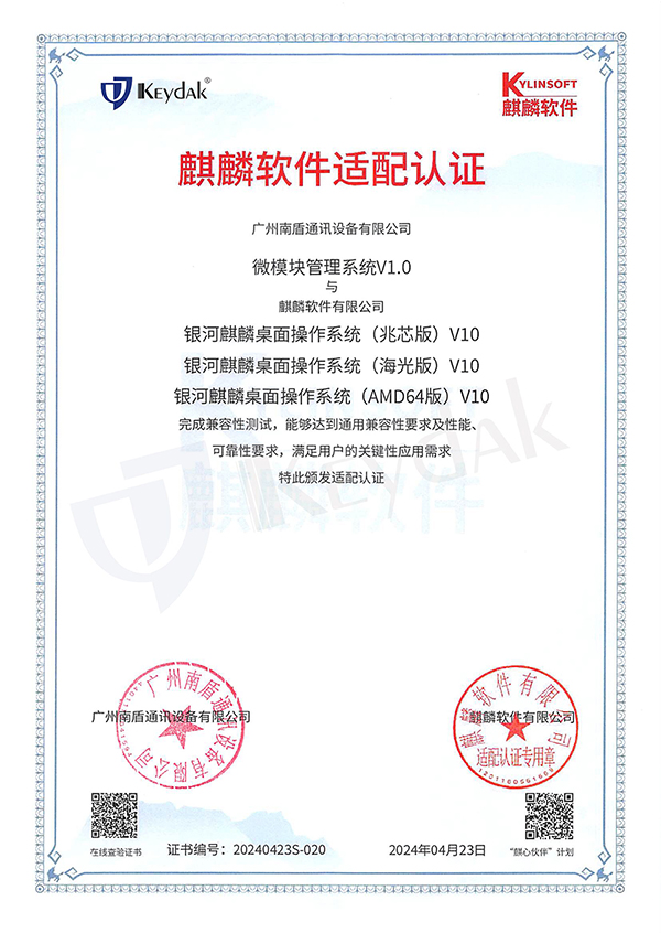 近日,我司自主研發(fā)的微模塊管理系統(tǒng)與麒麟軟件有限公司的銀河麒麟桌面操作系統(tǒng)(兆芯版)V10、銀河麒麟桌面操作系統(tǒng)(海光版)V10、銀河麒麟桌面操作系統(tǒng)(AMD64版)V10完成兼容性測試并通過了認證。